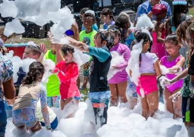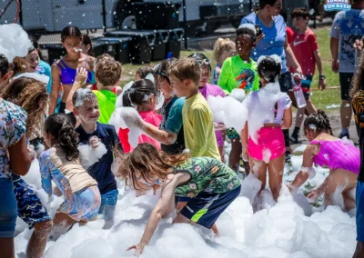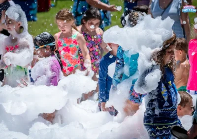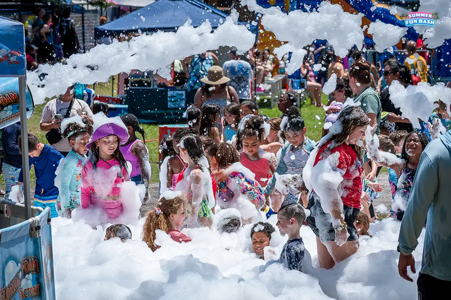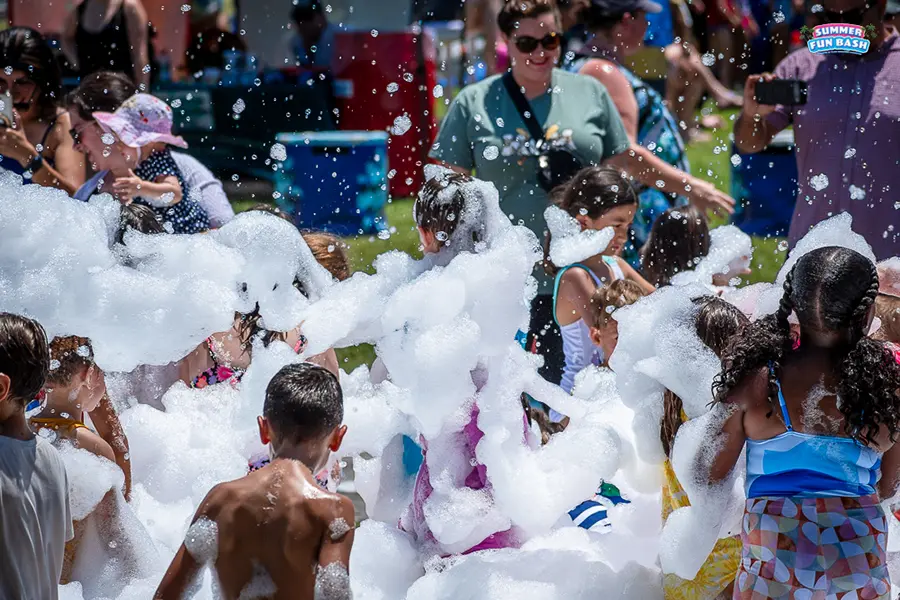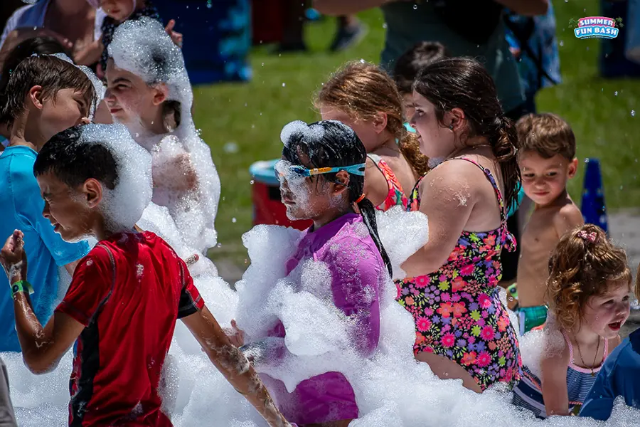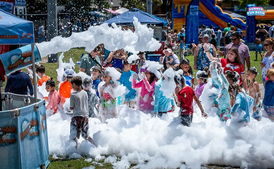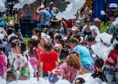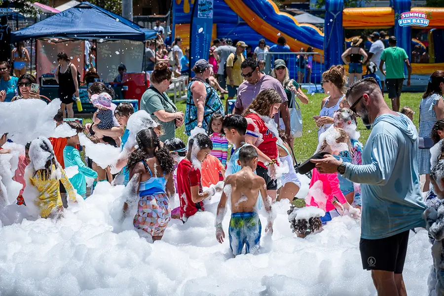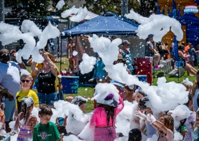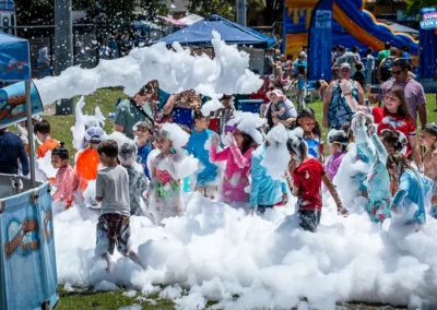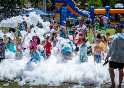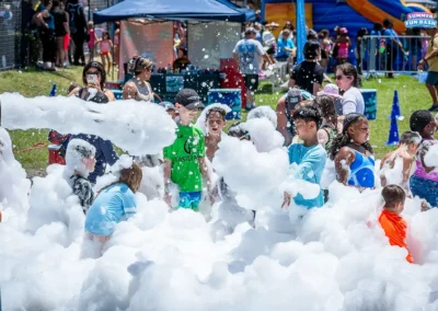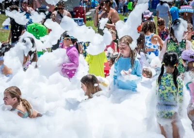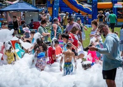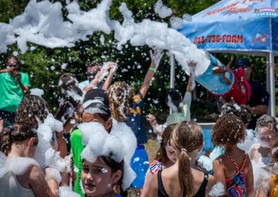 Children splashed through foam and water parties while parents browsed offerings from local craft and food vendors.