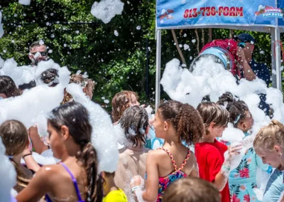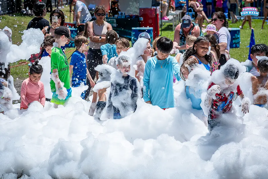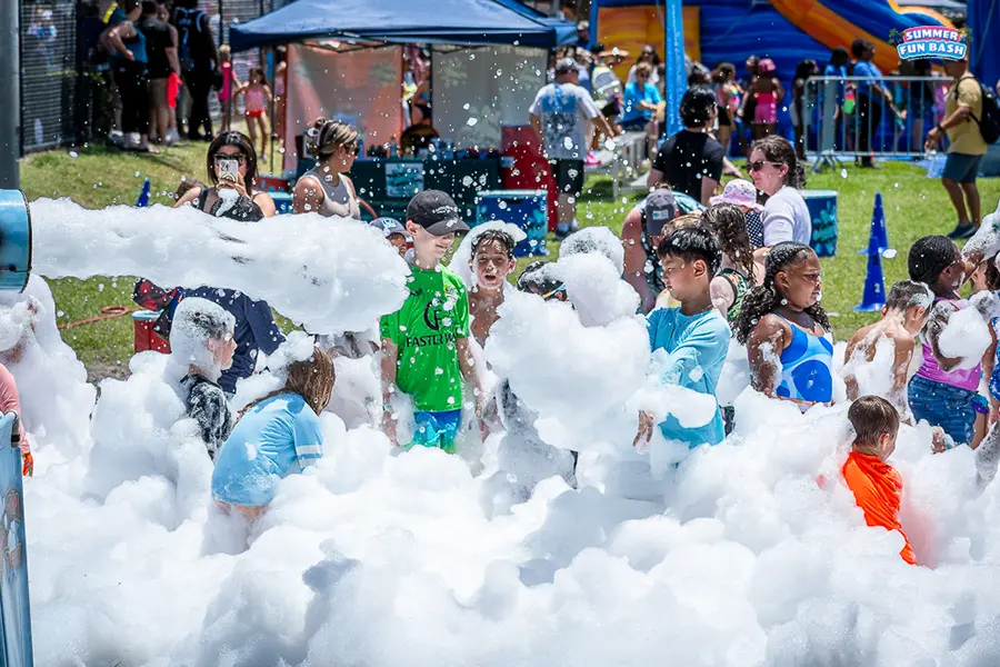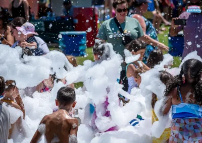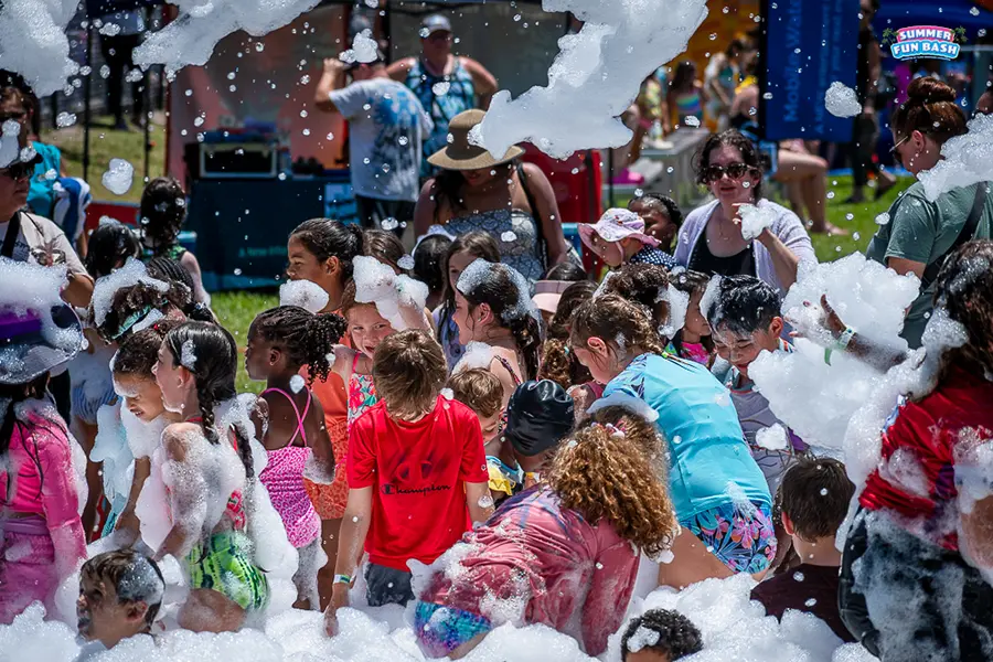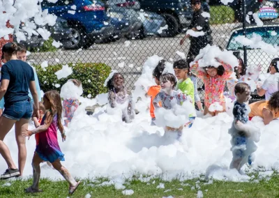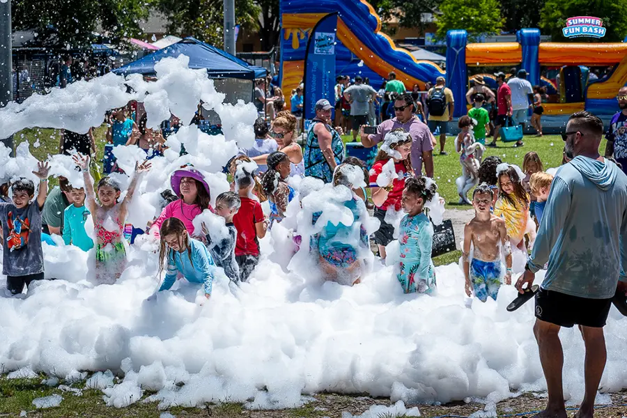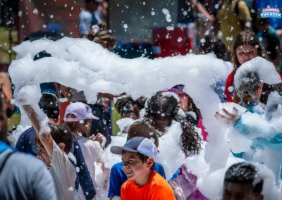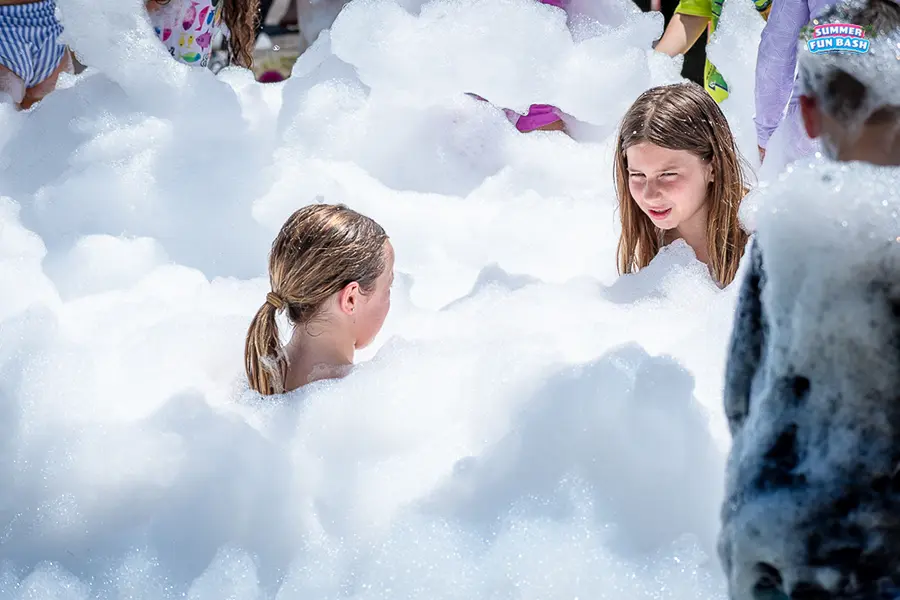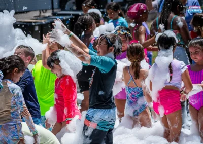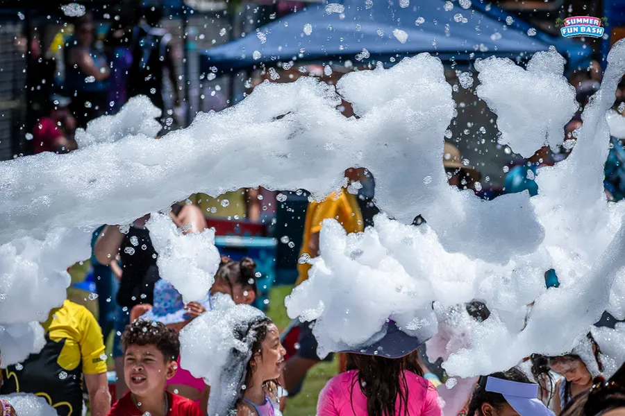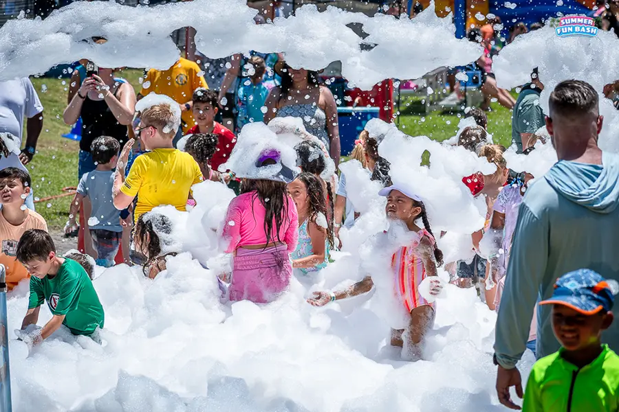 Children splashed through foam and water parties while parents browsed offerings from local craft and food vendors.