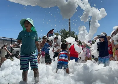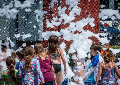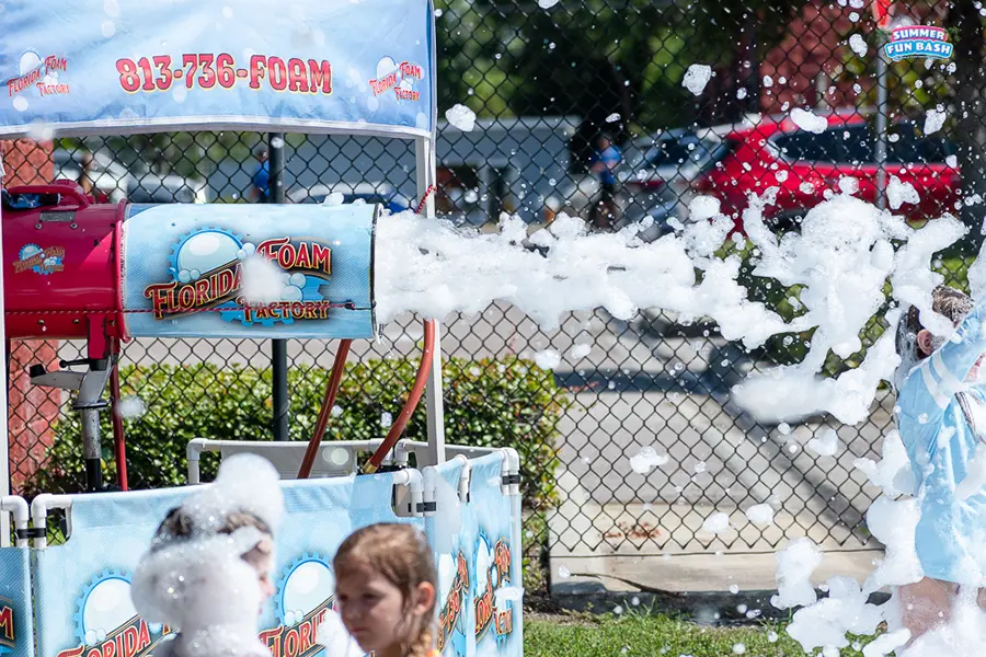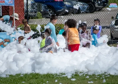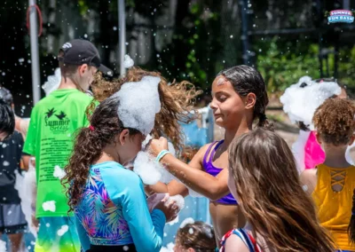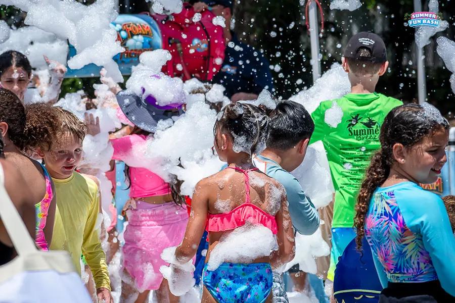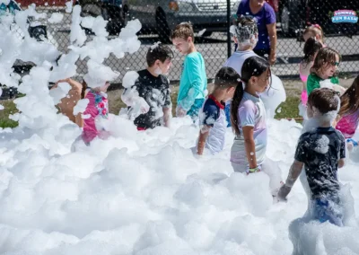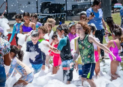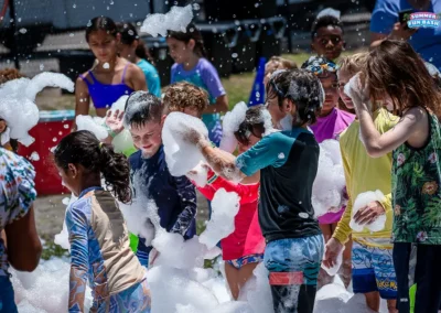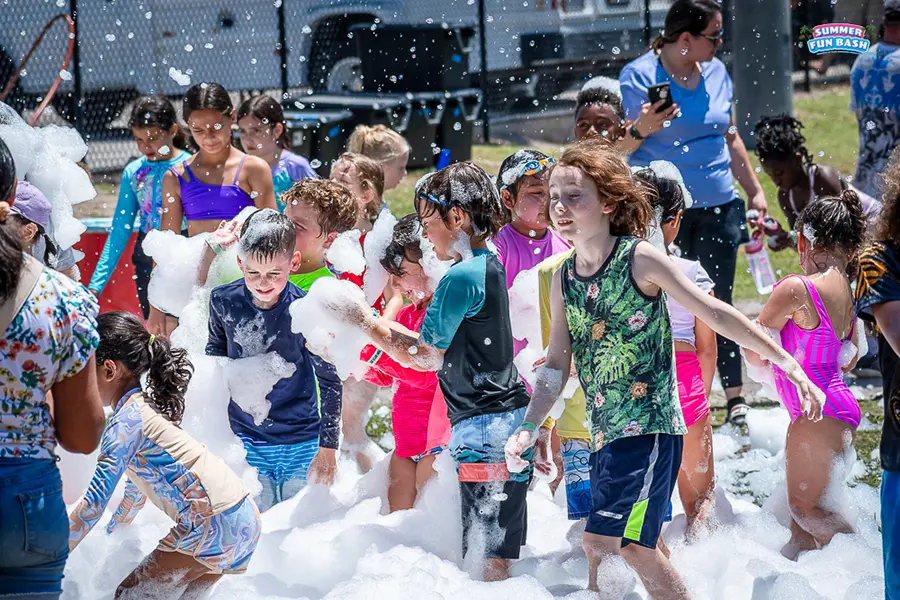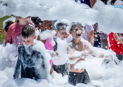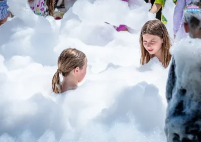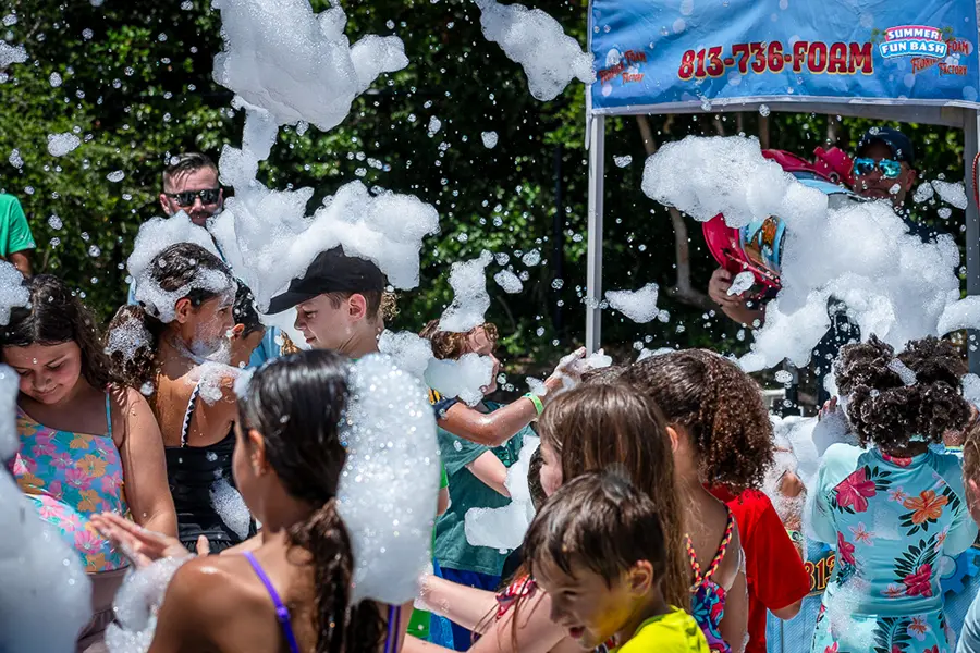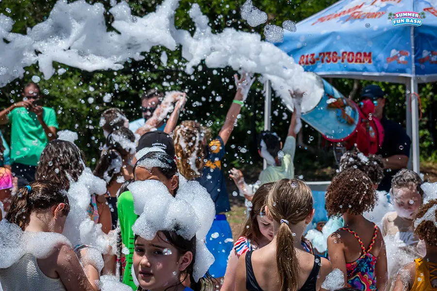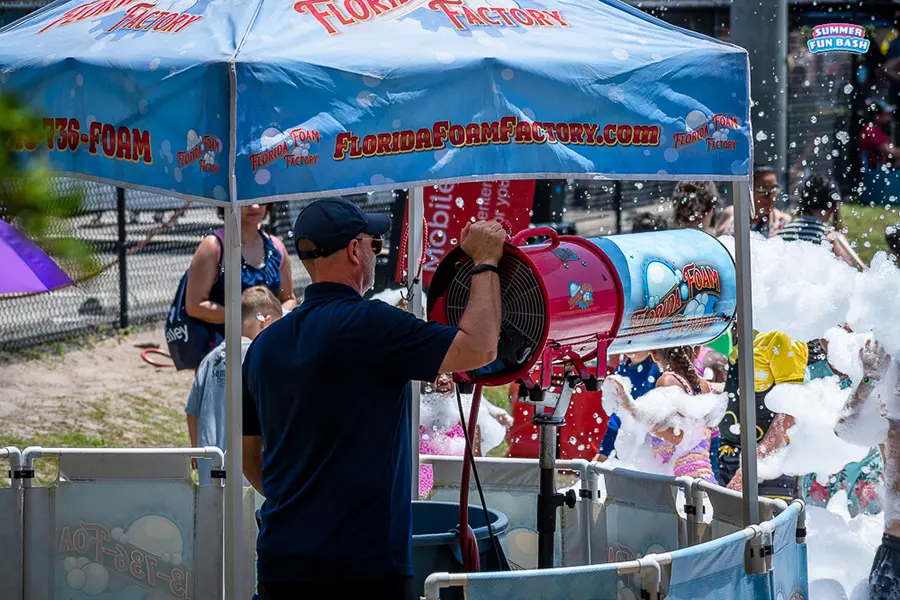Children splashed through foam and water parties while parents browsed offerings from local craft and food vendors.